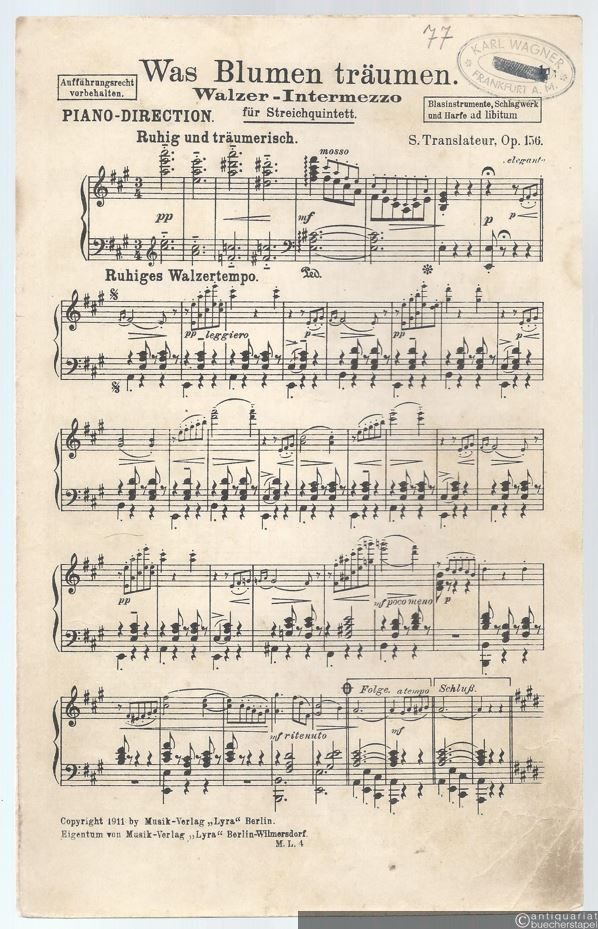 Was Blumen träumen, Op. 156. Walzer-Intermezzo für Streichquintett / Dream flowers / Reverie des fleurs (= Beliebte Werke für Konzert, Kino und Tanz). Ausgabe für Salonorchester. 13 Stimmen.