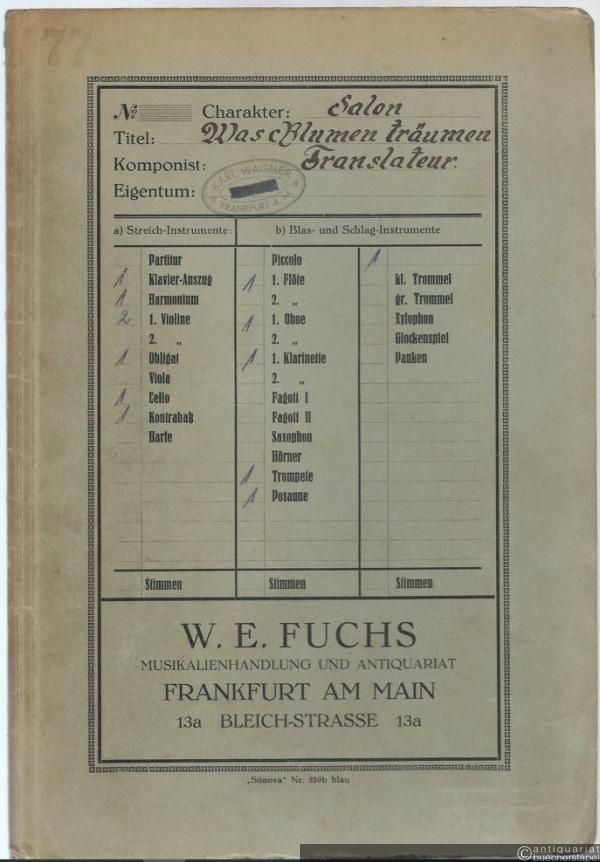 Was Blumen träumen, Op. 156. Walzer-Intermezzo für Streichquintett / Dream flowers / Reverie des fleurs (= Beliebte Werke für Konzert, Kino und Tanz). Ausgabe für Salonorchester. 13 Stimmen.