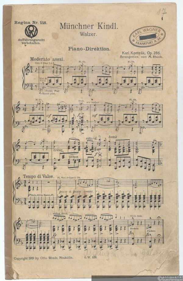 Münchner Kindl, Op. 286. Walzer (= Regina Nr. 118). Salonorchester. 13 Stimmen.