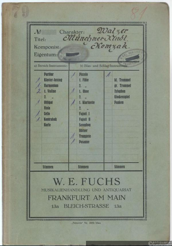 Münchner Kindl, Op. 286. Walzer (= Regina Nr. 118). Salonorchester. 13 Stimmen.