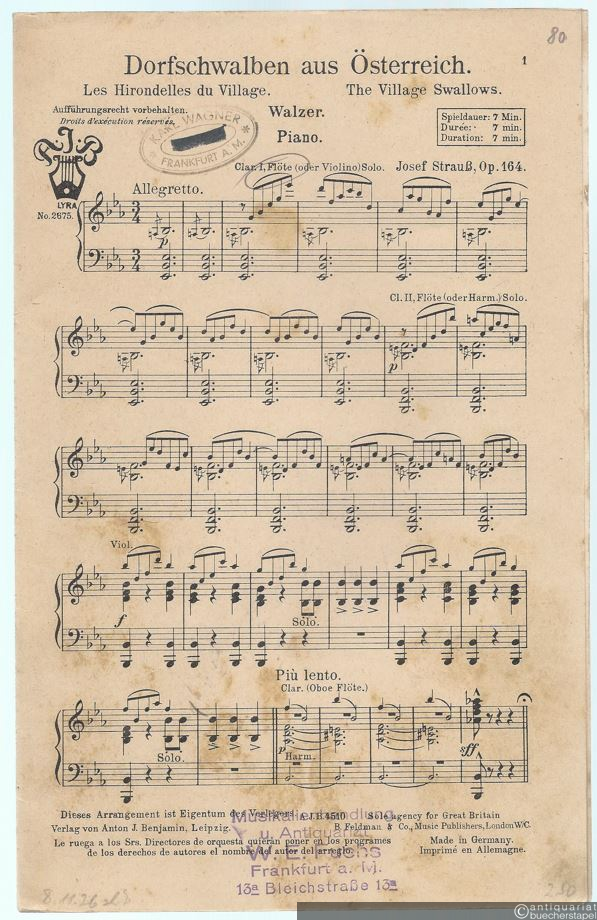 Dorfschwalben aus Österreich, 164. Walzer / Les hirondelles du village / The village swallows (= Lyra, No. 2675). Salonorchester. 12 Stimmen.