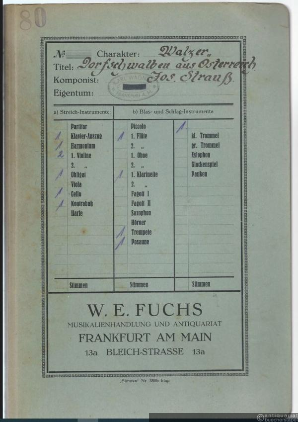 Dorfschwalben aus Österreich, 164. Walzer / Les hirondelles du village / The village swallows (= Lyra, No. 2675). Salonorchester. 12 Stimmen.