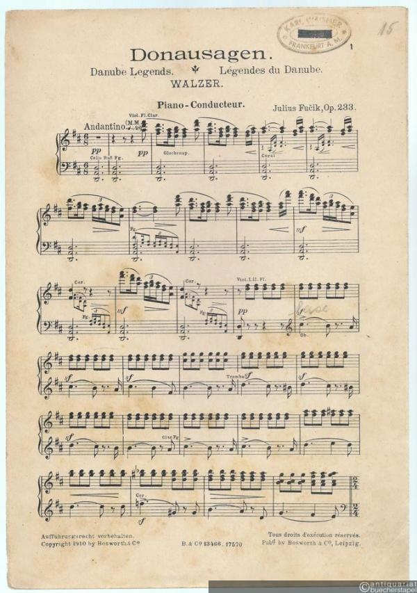 Donausagen, Op. 233. Walzer / Danube legends / Legendes du Danube. Salonorchester. 15 Stimmen.