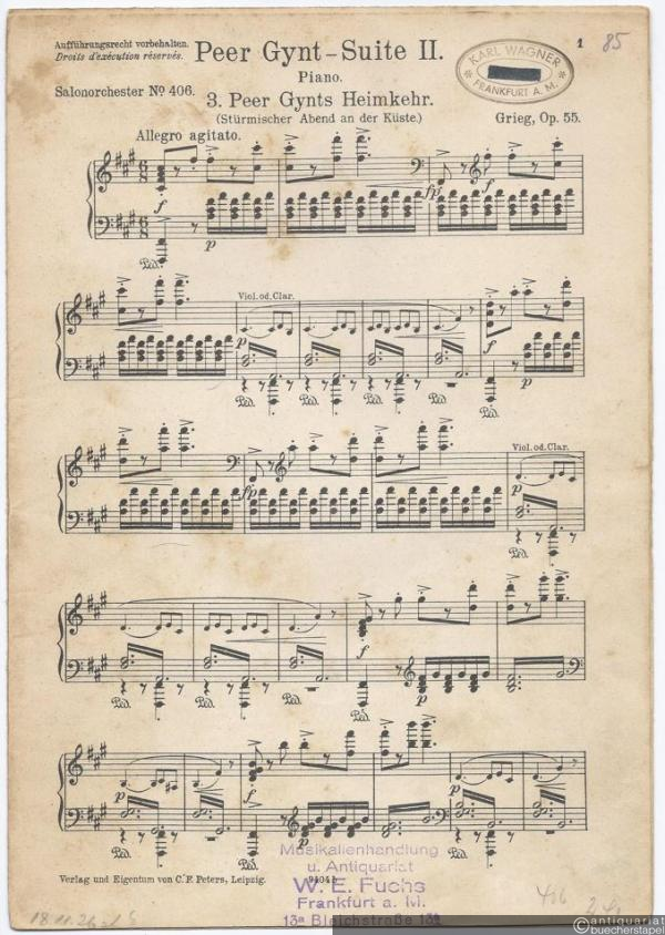 Peer Gynt-Suite II, Op. 55: 3. Peer Gynts Heimkehr (Stürmischer Abend an der Küste). 4. Solvejgs Lied (= Salonorchester No. 406). 12 Stimmen.