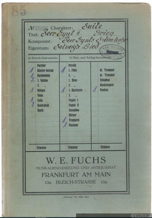 Peer Gynt-Suite II, Op. 55: 3. Peer Gynts Heimkehr (Stürmischer Abend an der Küste). 4. Solvejgs Lied (= Salonorchester No. 406). 12 Stimmen.