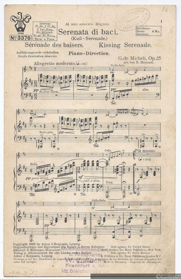 Serenata di baci (Kuß-Serenade), Op. 25 / Serenade des baisers / Kissing serenade (= Lyra, No. 3376). Salonorchester. 13 Stimmen.