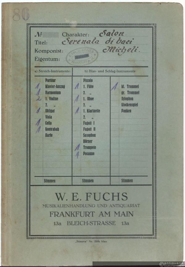 Serenata di baci (Kuß-Serenade), Op. 25 / Serenade des baisers / Kissing serenade (= Lyra, No. 3376). Salonorchester. 13 Stimmen.