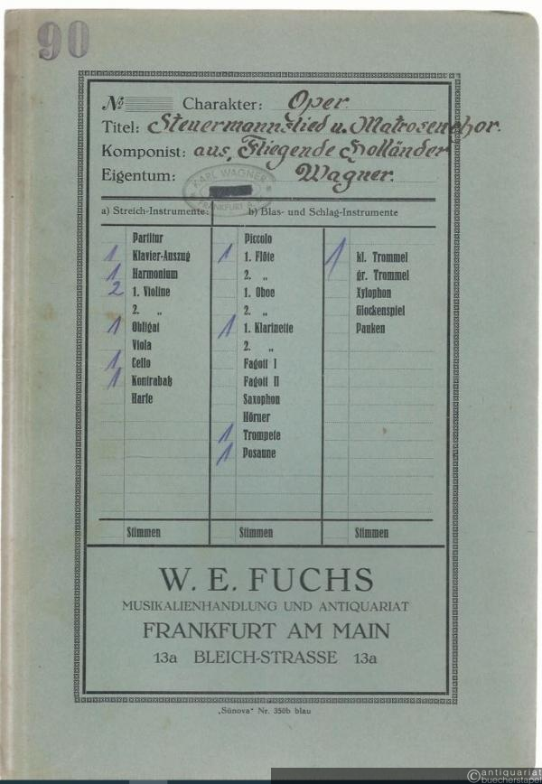 Steuermannslied und Matrosenchor aus der Oper: Der fliegende Holländer (= Lyra, No. 500). Salonorchester. 12 Stimmen.
