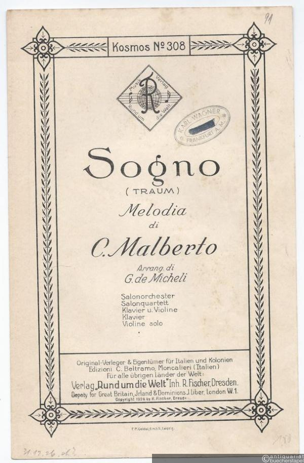 Sogno (Traum). Melodia (= Kosmos. Erfolgreiche Konzert- und Charakterstücke, Intermezzi und Paraphrasen, No. 308). Salonorchester. 11 Stimmen.