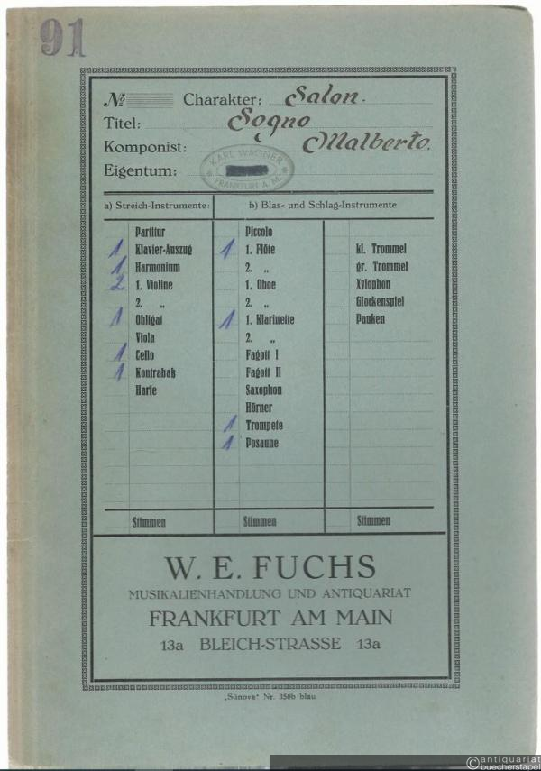 Sogno (Traum). Melodia (= Kosmos. Erfolgreiche Konzert- und Charakterstücke, Intermezzi und Paraphrasen, No. 308). Salonorchester. 11 Stimmen.