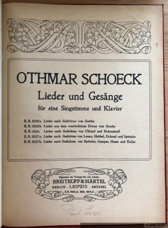 Lieder und Gesänge für eine Singstimme und Klavier, Op. 20: Lieder nach Gedichten von Uhland und Eichendorff (= Edition Breitkopf, Nr. 5026).