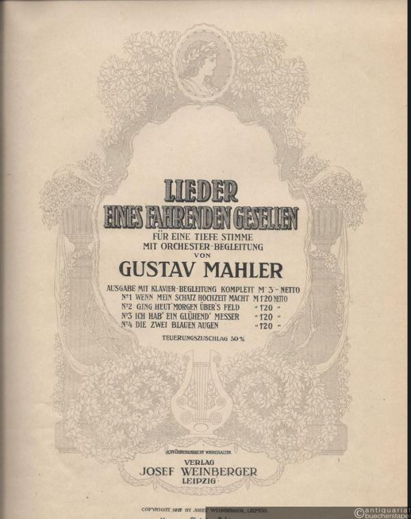 Lieder eines fahrenden Gesellen für eine tiefe Stimme mit Orchester-Begleitung. Ausgabe mit Klavierbegleitung komplett.