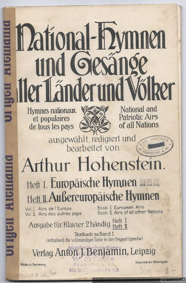 Außereuropäische Hymnen (= National-Hymnen und Gesänge aller Länder und Völker, Heft 2). [Klaviertrio:] Ausgabe für Klavier 2händig, Violine u. Violoncello.
