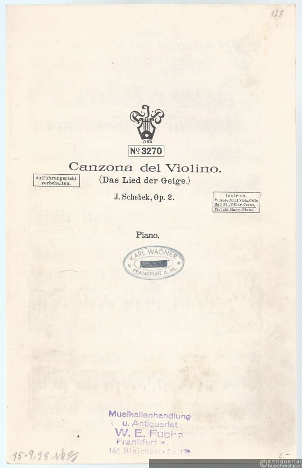 Canzona de Violino, Op. 2 / Das Lied der Geige (= Lyra No. 3270). Salonorchester. 9 Stimmen.