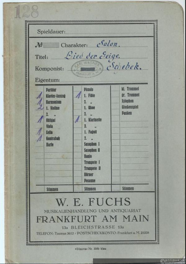 Canzona de Violino, Op. 2 / Das Lied der Geige (= Lyra No. 3270). Salonorchester. 9 Stimmen.