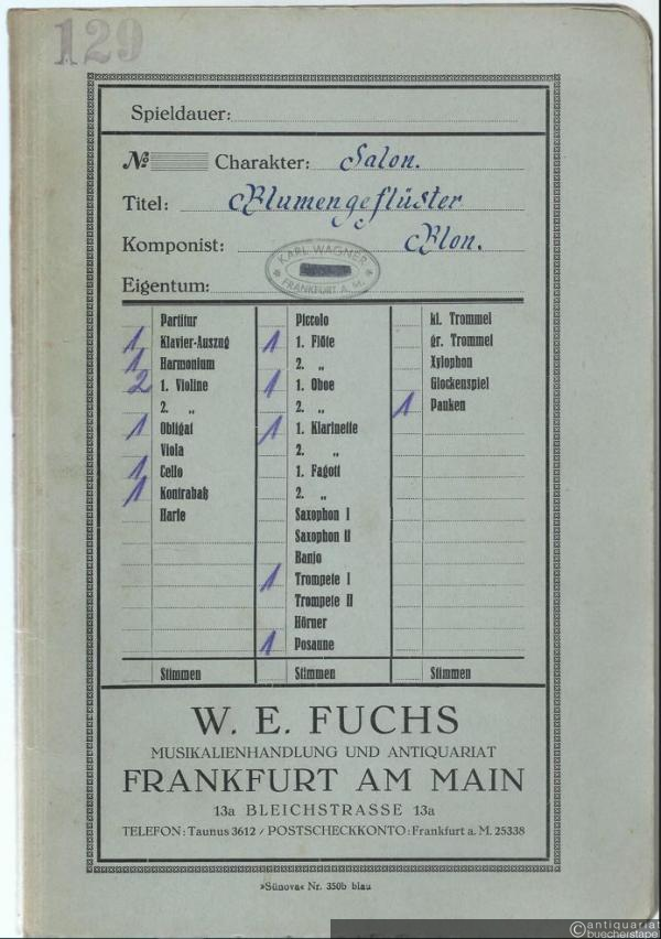 Blumengeflüster. Charakterstück / Murmure des fleurs / Bisbiglio dei fiori / Whispering of flowers (= Konzert-Programm für Salon-Orchester). 13 Stimmen.