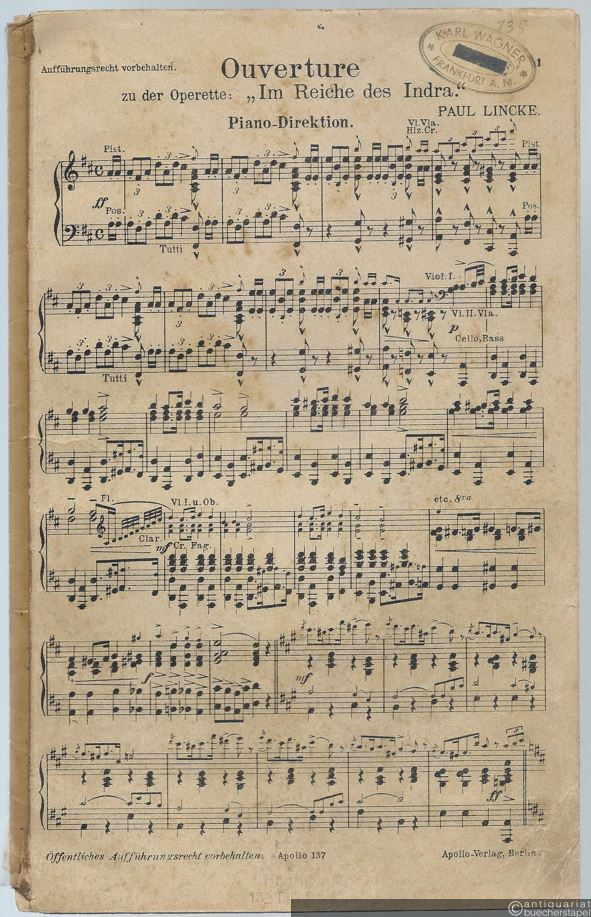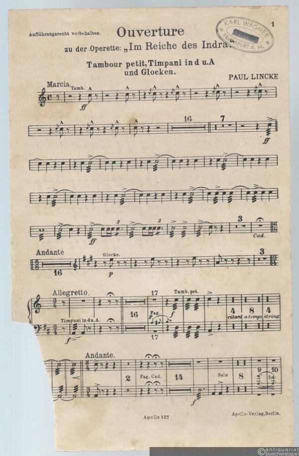 Ouverture zu der Operette: Im Reiche des Indra. Salonorchester. 13 Stimmen.