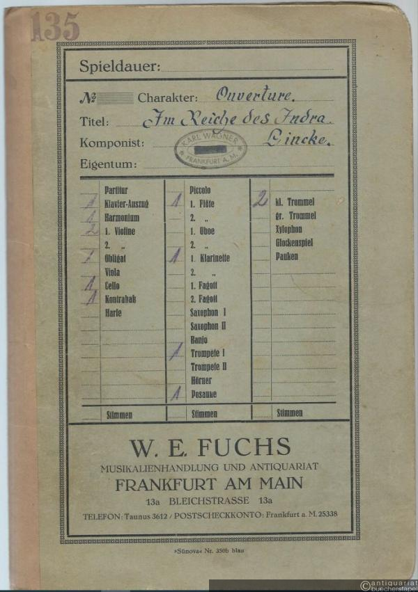 Ouverture zu der Operette: Im Reiche des Indra. Salonorchester. 13 Stimmen.