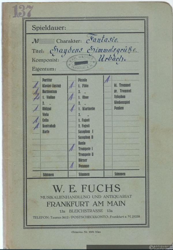 Haydns Himmelsgrüße. Fantasie / Haydn's heavenly greetings / Les chants celestes de Haydn (= Goldene Musik. Fantasien ausgewählter Schöpfungen unserer Meister von Ernst Urbach, Nr. 6). Salonorchester. 13 Stimmen.