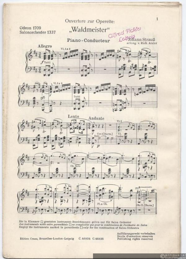 Ouverture zur Operette: Waldmeister (= Odeon No. 1709. Salonorchester No. 1337). 13 Stimmen.