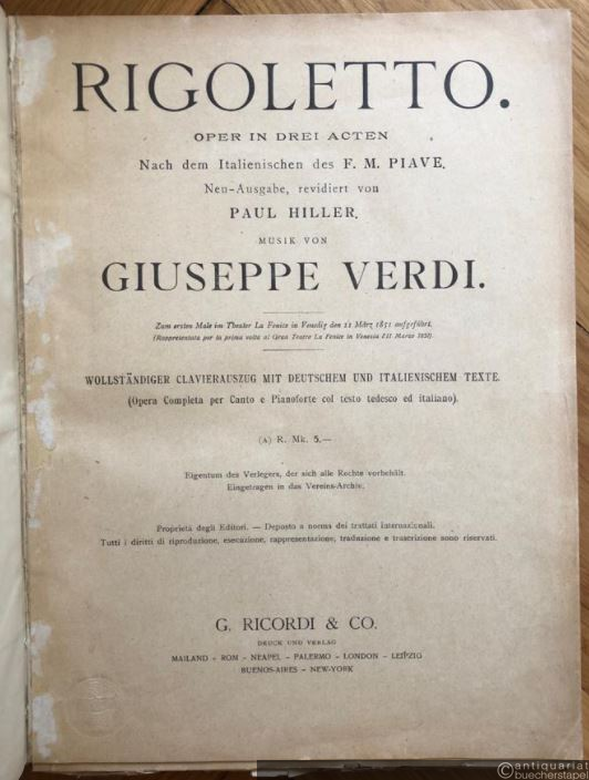 Rigoletto. Oper in drei Acten. Wollständiger [!] Clavierauszug mit deutschem und italienischem Texte.