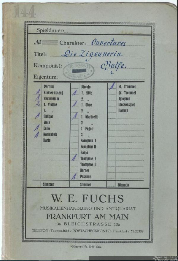 Ouverture zur Oper: Die Zigeunerin / Ouverture de l'opera: La Bohemienne / Ouverture of the opera: The gipsy girl (= Lyra No. 2616). Salonorchester. 13 Stimmen.
