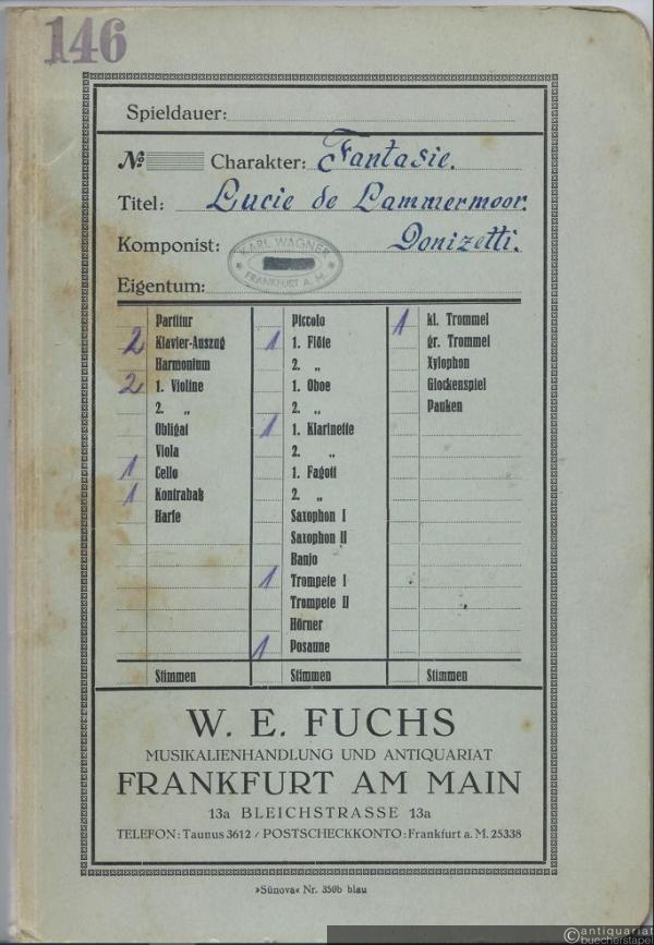 Fantasie sur Lucie de Lammermoor, opera de Donizetti. Salonorchester. 11 Stimmen.