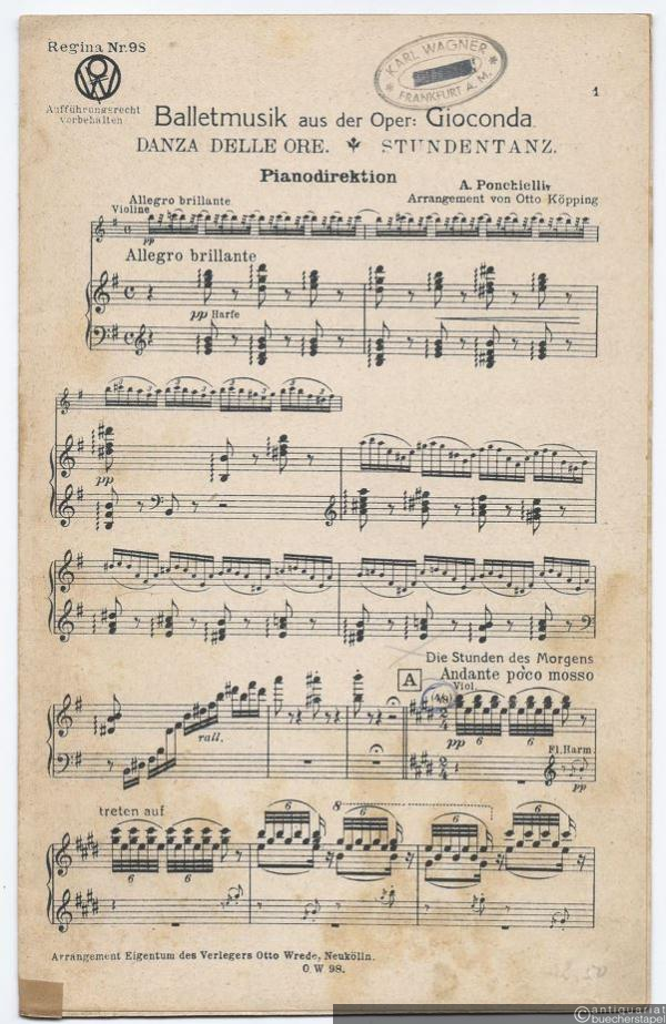 Ballettmusik aus der Oper: Gioconda / Danza delle ore / Stundentanz (= Regina No. 98). Salonorchester. 13 Stimmen.
