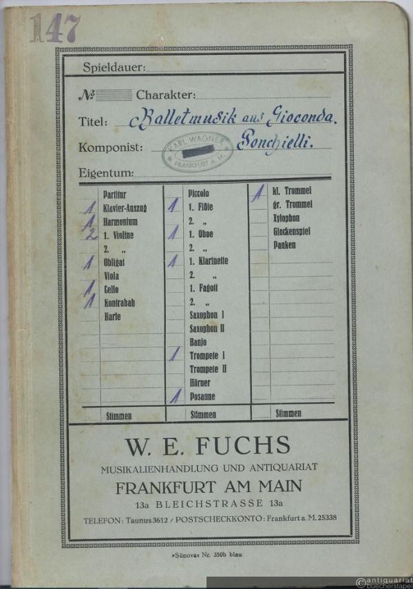 Ballettmusik aus der Oper: Gioconda / Danza delle ore / Stundentanz (= Regina No. 98). Salonorchester. 13 Stimmen.