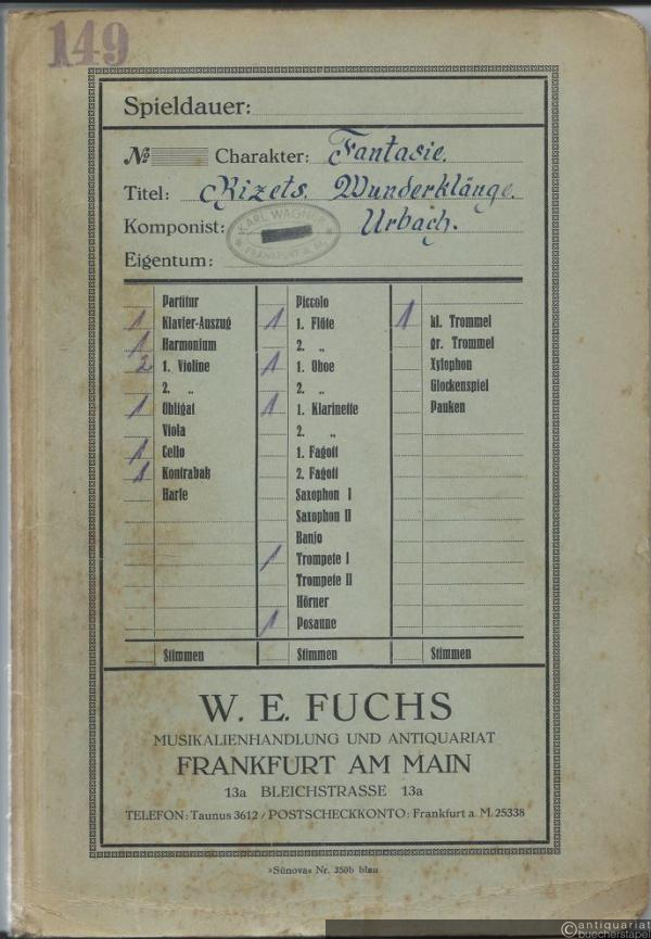 Bizets Wunderklänge. Fantasie (= Goldene Musik. Fantasien ausgewählter Schöpfungen unserer Meister von Ernst Urbach, 2. Folge, Nr. 12). Salonorchester. 13 Stimmen.