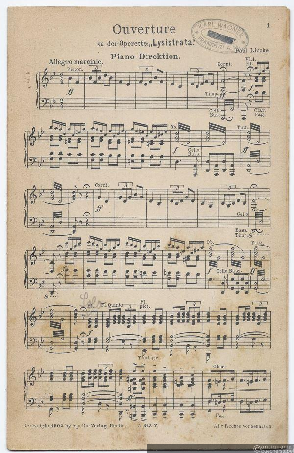 Ouverture zu der Operette: Lysistrata. Salonorchester. 13 Stimmen.