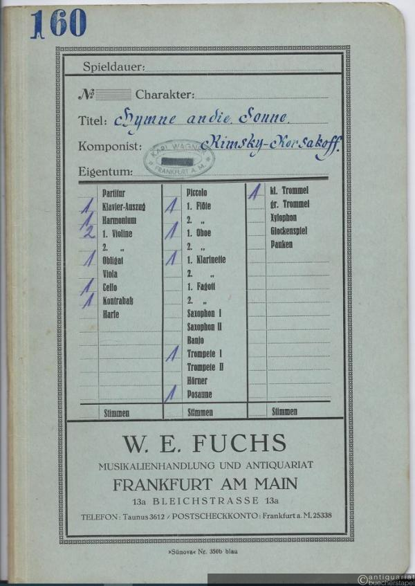 Hymne an die Sonne (Le Coq d'or) / Hymne au soleil / Hymn to the sun (= Lyra No. 3704). Salonorchester. 13 Stimmen.