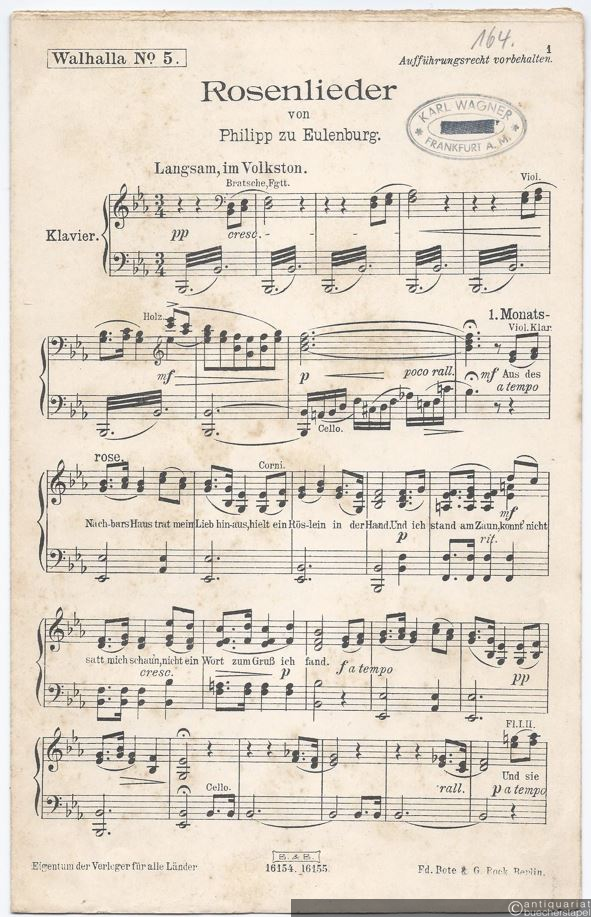 Rosenlieder (= Walhalla No. 5). Salonorchester. 13 Stimmen.