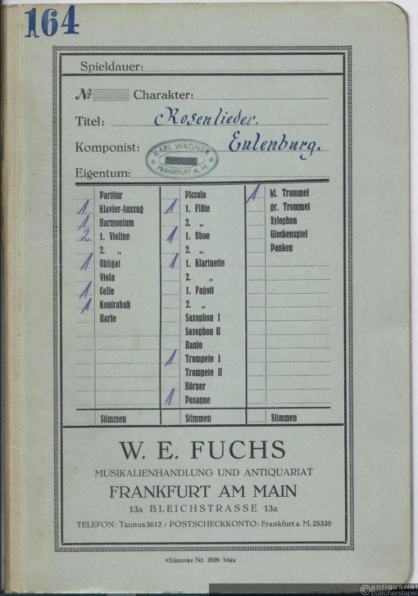 Rosenlieder (= Walhalla No. 5). Salonorchester. 13 Stimmen.