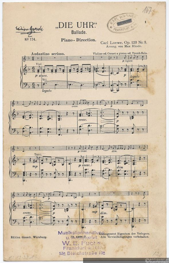 Die Uhr, Op. 123 Nr. 3. Ballade (= Edition Grosch, No. 174). Salonorchester. 12 Stimmen.