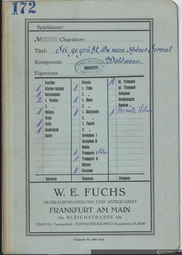 Seigegrüßt du mein schönes Sorrent! Op. 63. Lied (= 5 beliebte Lieder für Salon-Orchester von Ludolf Waldmann, [Nr. 1]). 15 Stimmen.