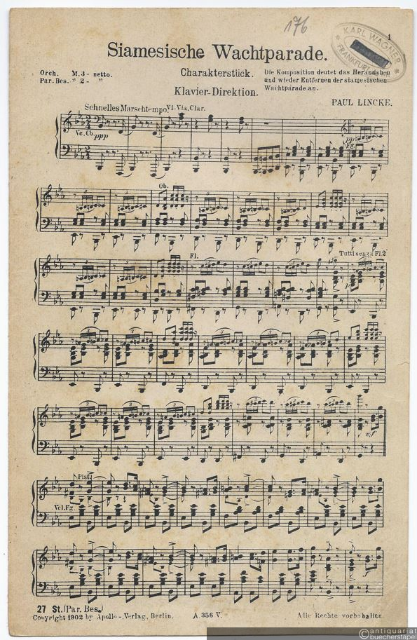 Siamesische Wachtparade. Charakterstück. Salonorchester. 12 Stimmen.