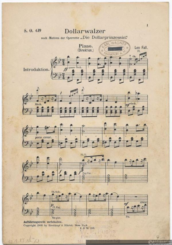 Dollarwalzer nach Motiven der Operrette [!]: Die Dollarprinzessin (= S. O. 439). 14 Stimmen.