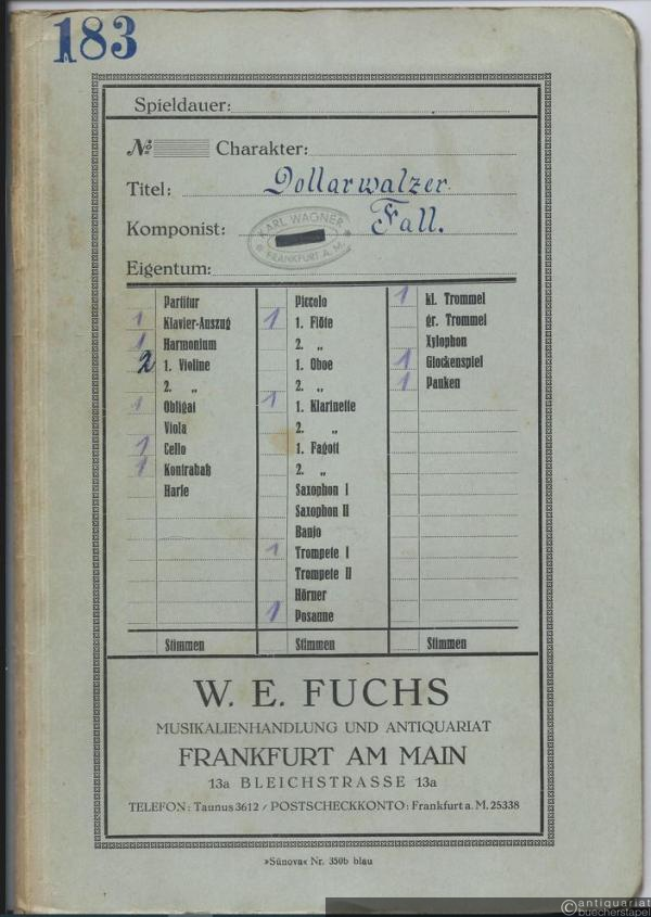 Dollarwalzer nach Motiven der Operrette [!]: Die Dollarprinzessin (= S. O. 439). 14 Stimmen.