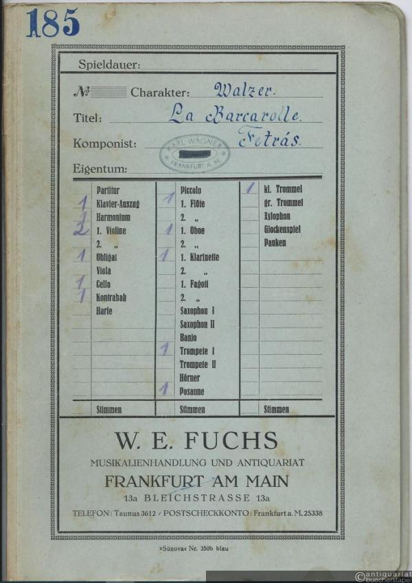 La Barcarolle, Op. 128. Walzer nach Motiven der Oper: Hoffmann's Erzählungen von J. Offenbach (= Lyra No. 100). Salonorchester. 13 Stimmen.
