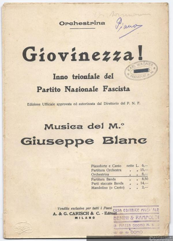 Giovinezza. Inno trionfale del Partito Nazionale Fascista. Salonorchester. Partitura Orchestra u. Orchestrina (9 Stimmen).