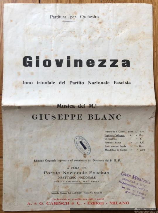 Giovinezza. Inno trionfale del Partito Nazionale Fascista. Salonorchester. Partitura Orchestra u. Orchestrina (9 Stimmen).