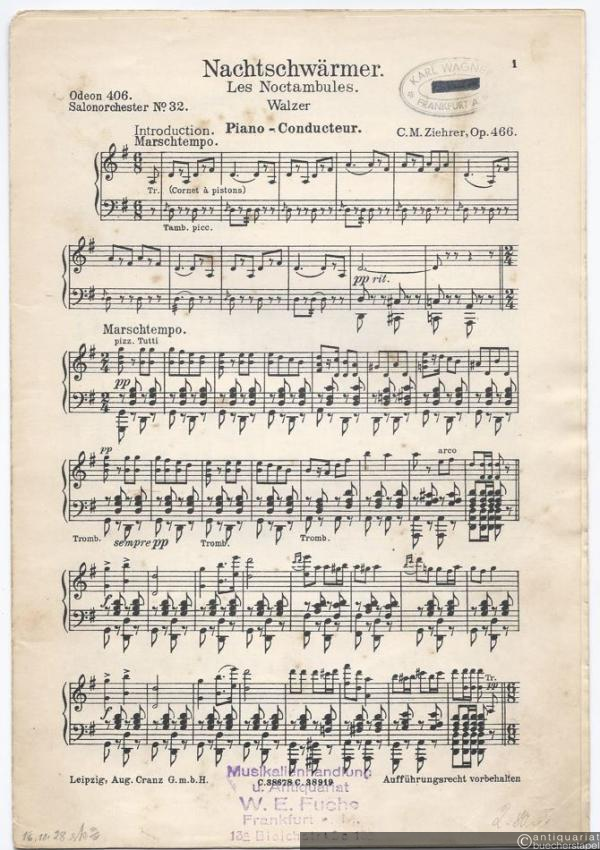 Nachtschwärmer, Op. 466. Walzer / Le Noctambules (= Odeon No. 406. Salonorchester No. 32). 13 Stimmen.