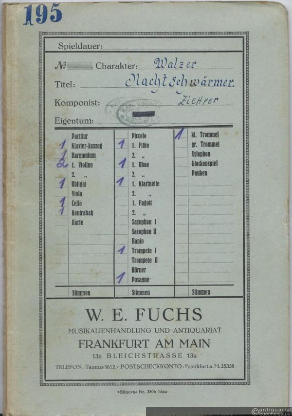 Nachtschwärmer, Op. 466. Walzer / Le Noctambules (= Odeon No. 406. Salonorchester No. 32). 13 Stimmen.