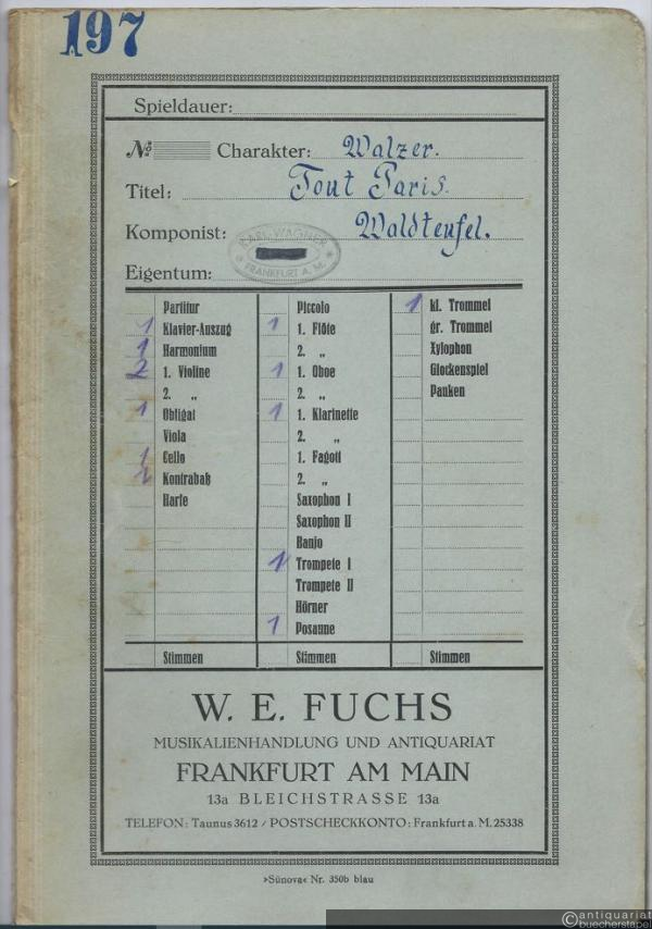 Tout-Paris, Op. 240. Valse (= Odeon No. 290. Salonorchester No. 67). 13 Stimmen.