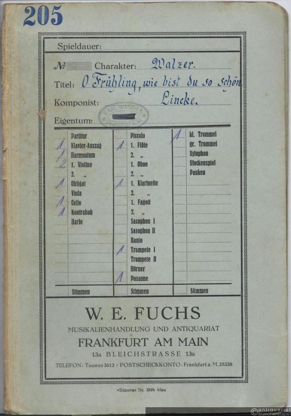 O Frühling, wie bist du schön. Walzer / Joli printemps / Beautiful springtime. Salonorchester. 12 Stimmen.
