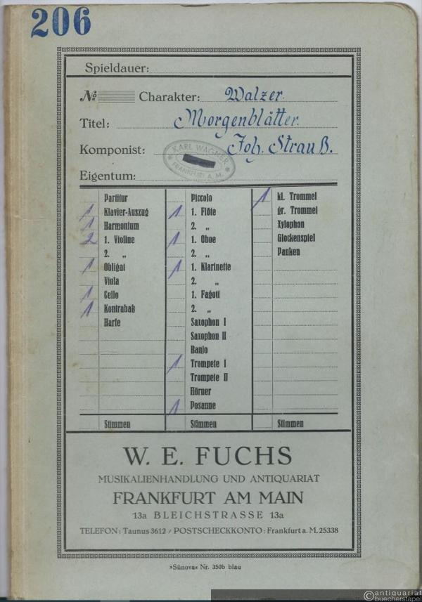 Morgenblätter, Op. 279. Walzer / Les feuilles du matin. Valse (= Odeon No. 53. Salonorchester No. 138). 13 Stimmen.