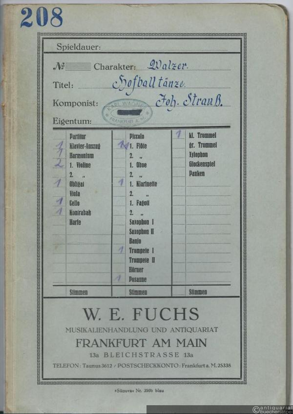 Hofballtänze, Op. 298. Walzer / Les bals de la cour. Valse (= Odeon No. 490. Salonorchester No. 303). 12 Stimmen.