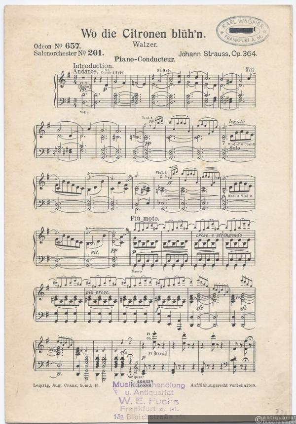 Wo die Citronen blüh'n, Op. 364. Walzer (= Odeon No. 657. Salonorchester No. 201). 13 Stimmen.
