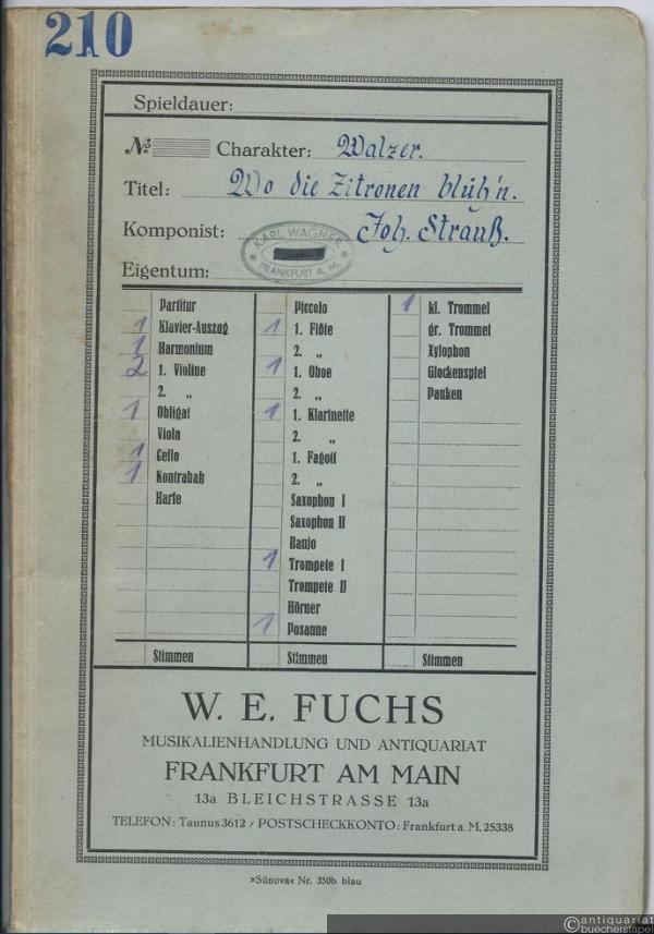 Wo die Citronen blüh'n, Op. 364. Walzer (= Odeon No. 657. Salonorchester No. 201). 13 Stimmen.